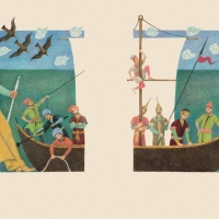 Первая. вид со спины. Старый седой человек раскинув руки стоит на вершине горы. Волосы его развиваются, он медленно рассыпается в прах. вторая. начало прошлого века. Несколько ...