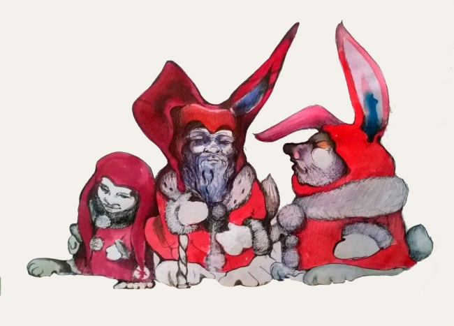 Первая. вид со спины. Старый седой человек раскинув руки стоит на вершине горы. Волосы его развиваются, он медленно рассыпается в прах. вторая. начало прошлого века. Несколько ...