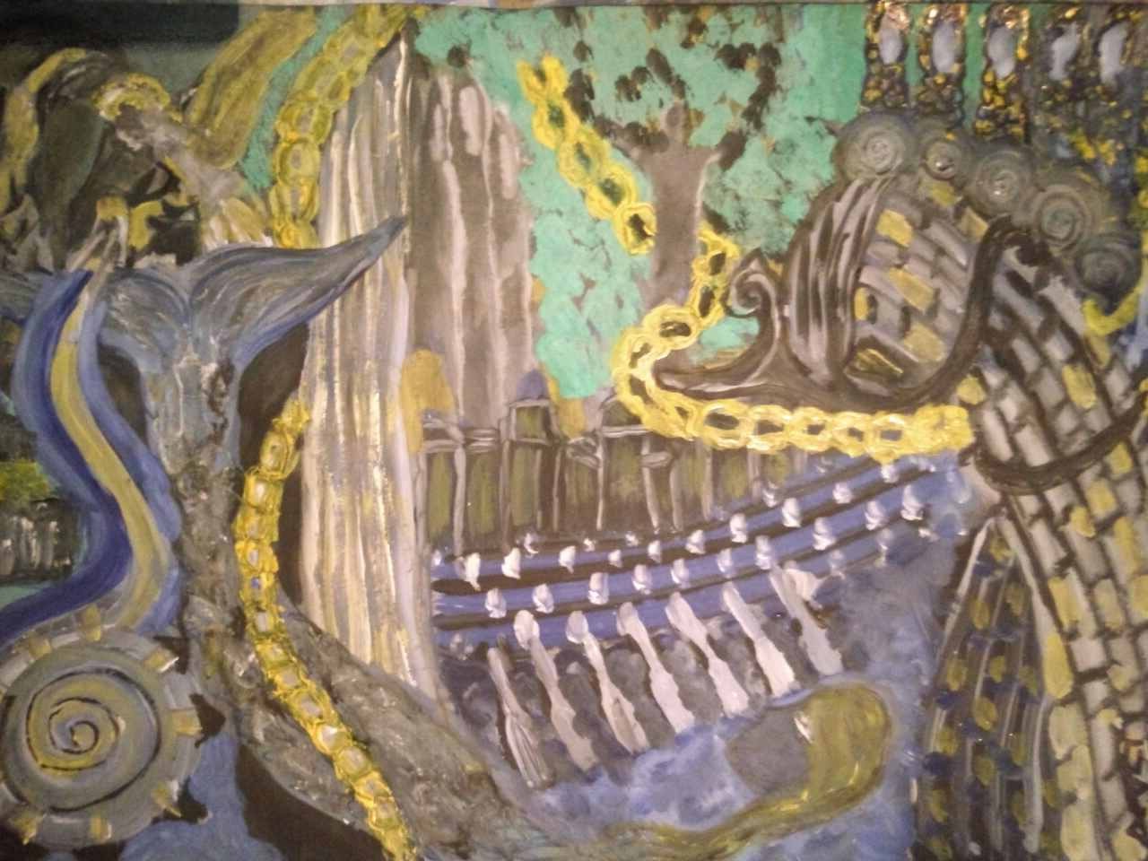 Первая. вид со спины. Старый седой человек раскинув руки стоит на вершине горы. Волосы его развиваются, он медленно рассыпается в прах. вторая. начало прошлого века. Несколько ...