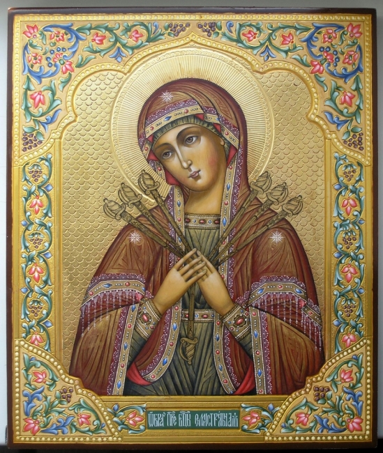Икона пишется на липовой доске темперой по левкасу и золочению. Цена зависит от размера иконной доски, площади и методов золочения, а также сложности и многозадачности живописи. Представленные работы для примера уже выполнены и находятся в частных коллекциях