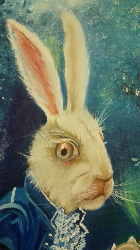 Эта сказочная картина украсит любой интерьер. Трогательный Белый Кролик в образе художника - персонаж из известной сказки Льюиса Кэролла "Алиса в стране чудес". Картина заряжена добром и позитивным настроением. Так же в картине присутствуют эль счастья, эль любви и трех литровая банка здоровья.