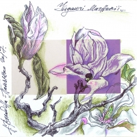 Прекрасна в своей сильной красоте ветка магнолии. Её крупные цветы с крепкими, плотными лепестками, похоже навсегда останутся украшением сада. Но, это - иллюзия красоты. И к ним прийдет время увядания. Увы, красота не бессмертна! Но... художнику подвласно остановить время.