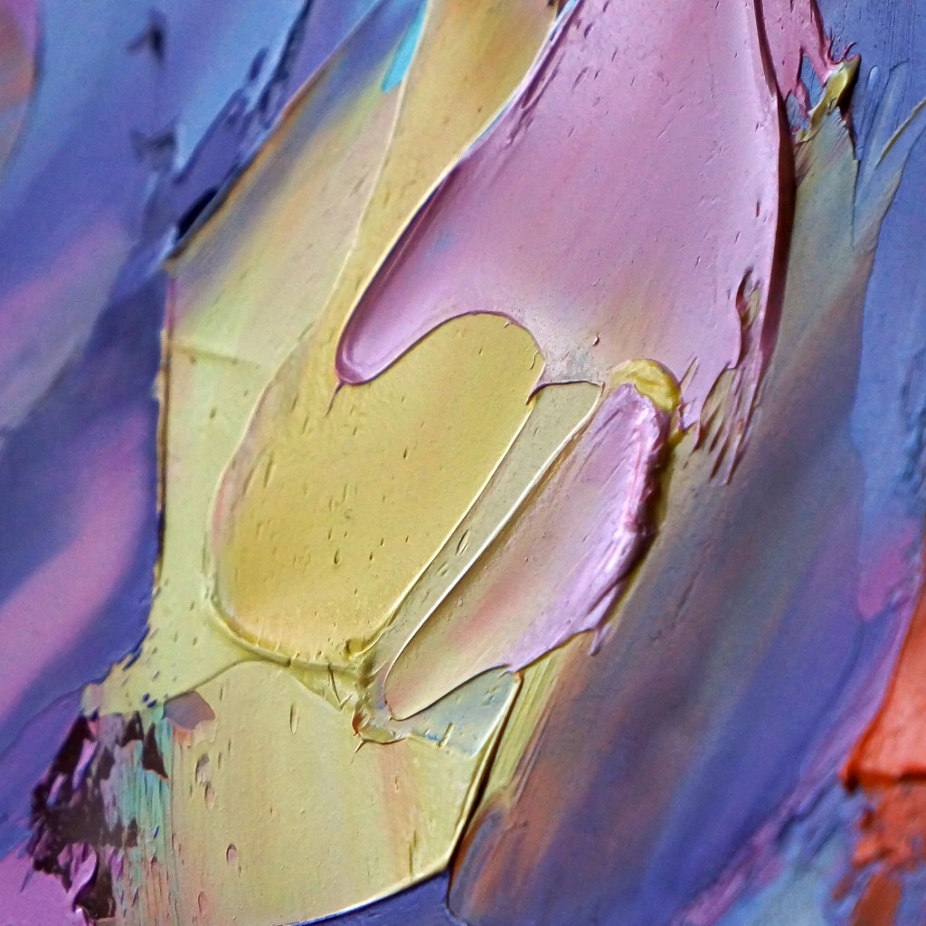 Работа из серии "Исчезающие". Серия посвящена вымирающим видам животных, занесенных в Красную Книгу. Первые слои масла скрыты под полупрозрачной смолой. Образ в буквальном смысле исчезает на картине. Антилопа бонго - вид близкие к уязвимому положению (NT). Ее еще хорошо видно, но она уже начала исчезать.