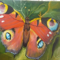 Живописная работа "Бабочка" на холсте. Красота природы в виде бабочки на фоне зелени оживит любую комнату .