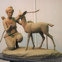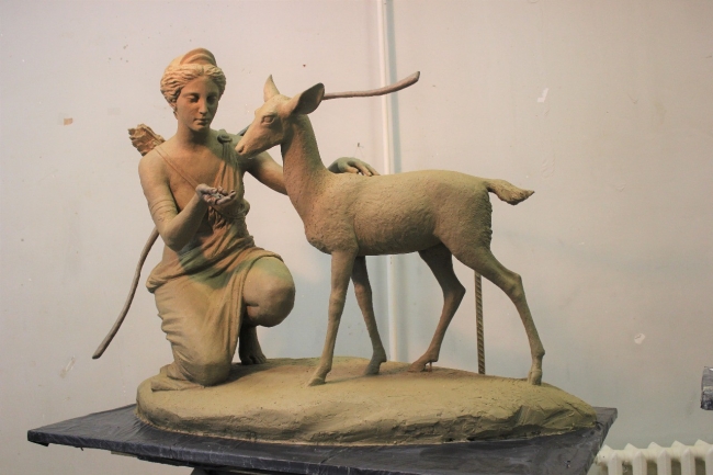 В процессе работы над скульптурной композицией "Диана", главной задачей было создать художественный образ Дианы-покровительницы природы и животных. Эта скульптура создает внутри себя воздушное, замыкающее пространство, внутри которого есть трогательный момент взаимодействия женственной Дианы и боязливой лани.