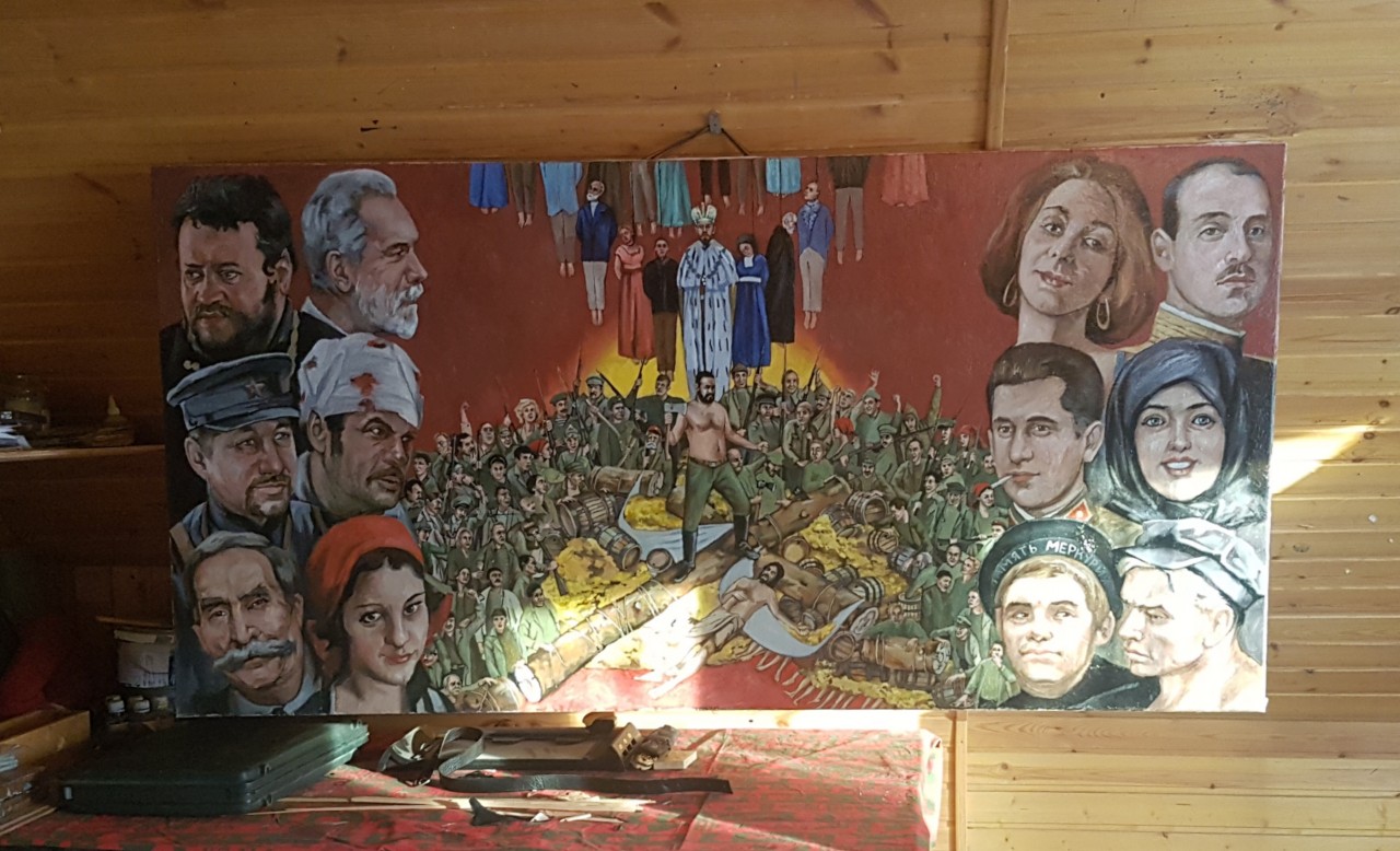 Первая. вид со спины. Старый седой человек раскинув руки стоит на вершине горы. Волосы его развиваются, он медленно рассыпается в прах. вторая. начало прошлого века. Несколько ...