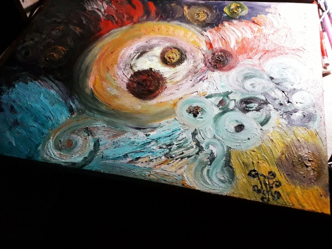 Планеты в стиле абстракция. Данный арт - объект в наличии. Продается. Цена 150 тыс. Доставка.