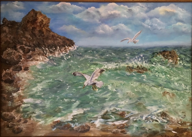 Морской пейзаж с чайками - прекрасное украшение или дополнение к интерьеру. Красивая картина моря с чайками погружает нас в счастливое ощущение единения с морским таинством, позволяет отбросить, забыть на время все наши проблемы и задачи. Можно смотреть, любоваться и отдыхать, а через некоторое время ощутить прилив новых сил, бодрость и отличное настроение.Работа написана на холсте маслом отличного качества.