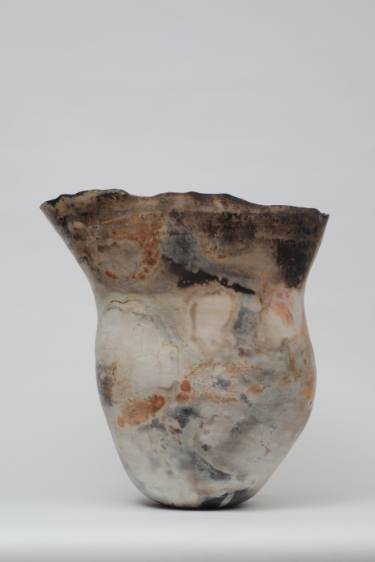 Ваза авторской работы, с особой смесью глин и пигментов, которые при обжиге придают изделию орнамент похожий на натуральный камень.
