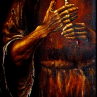 Первая. вид со спины. Старый седой человек раскинув руки стоит на вершине горы. Волосы его развиваются, он медленно рассыпается в прах. вторая. начало прошлого века. Несколько ...