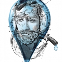 Первая. вид со спины. Старый седой человек раскинув руки стоит на вершине горы. Волосы его развиваются, он медленно рассыпается в прах. вторая. начало прошлого века. Несколько ...