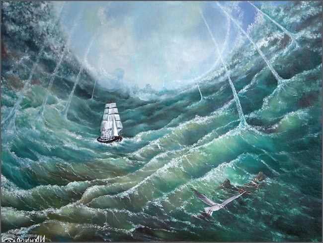 Первая. вид со спины. Старый седой человек раскинув руки стоит на вершине горы. Волосы его развиваются, он медленно рассыпается в прах. вторая. начало прошлого века. Несколько ...
