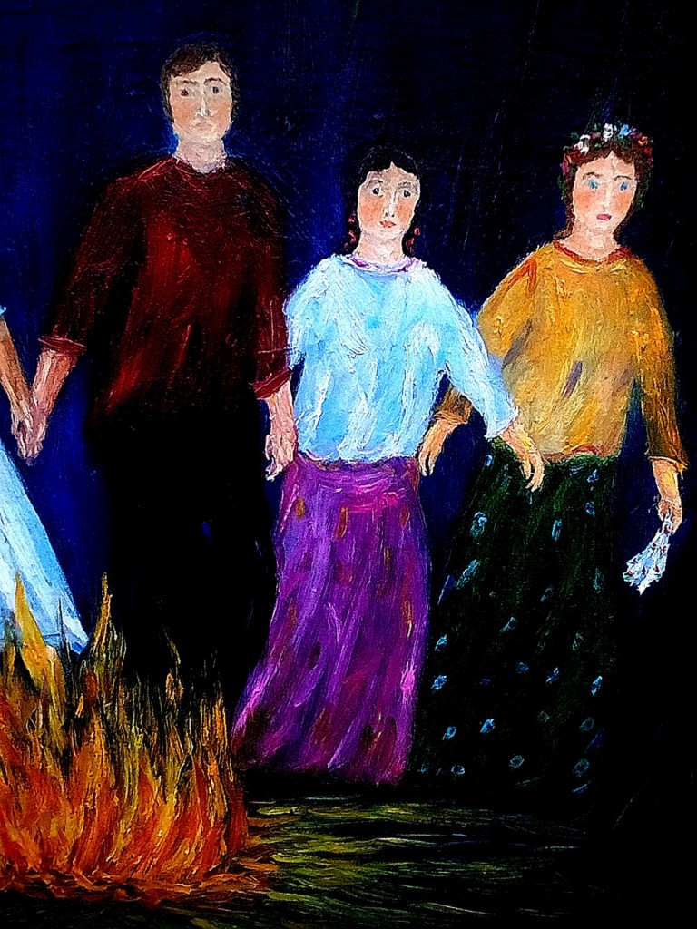 Первая. вид со спины. Старый седой человек раскинув руки стоит на вершине горы. Волосы его развиваются, он медленно рассыпается в прах. вторая. начало прошлого века. Несколько ...