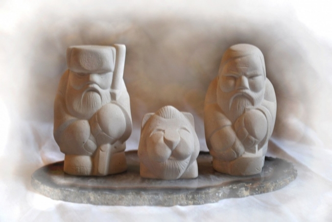 Композиция из з- х образов в стиле скульптуры малых форм, материал терракота