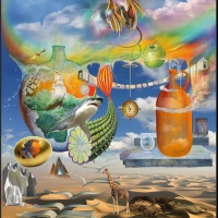 Первая. вид со спины. Старый седой человек раскинув руки стоит на вершине горы. Волосы его развиваются, он медленно рассыпается в прах. вторая. начало прошлого века. Несколько ...