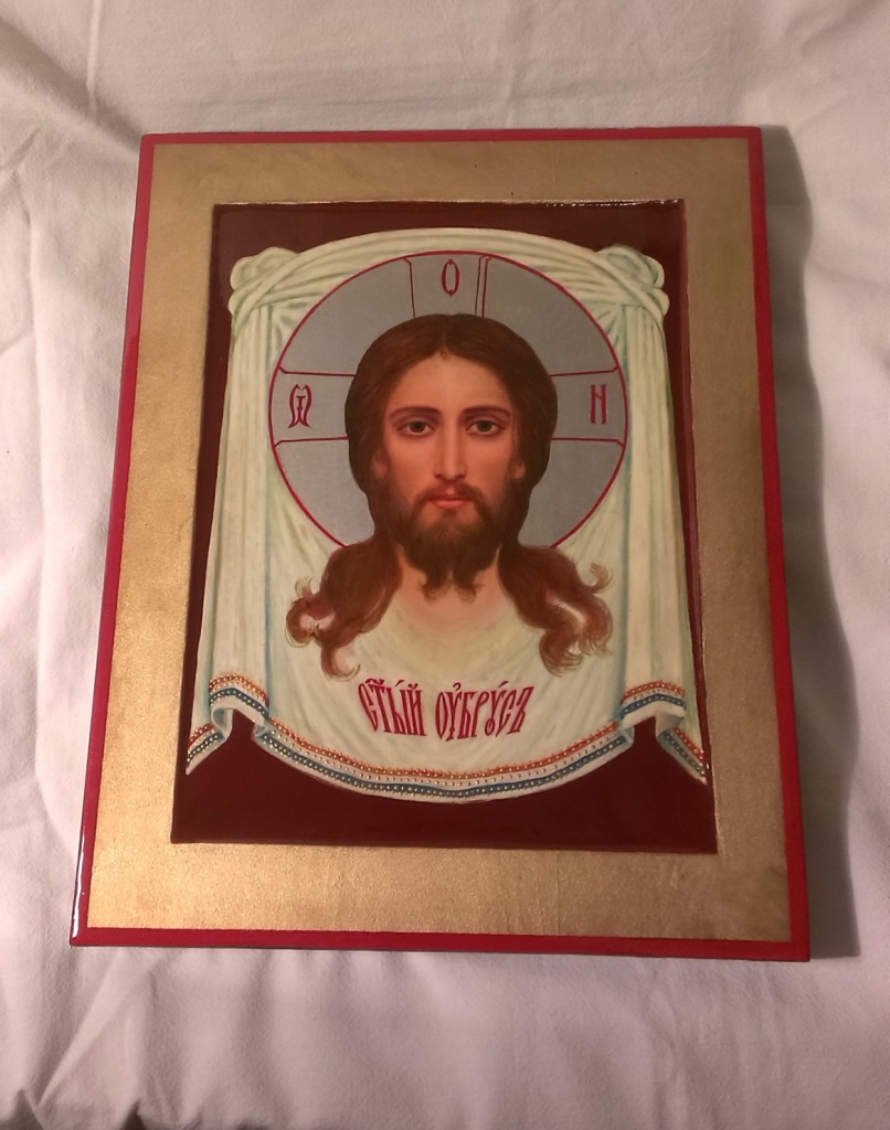 Материалы: Иконная доска с ковчегом, торцевые дубовые шпонки, левкас, твореное золото, поталь, темпера, масло, олифа.