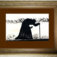 Первая. вид со спины. Старый седой человек раскинув руки стоит на вершине горы. Волосы его развиваются, он медленно рассыпается в прах. вторая. начало прошлого века. Несколько ...