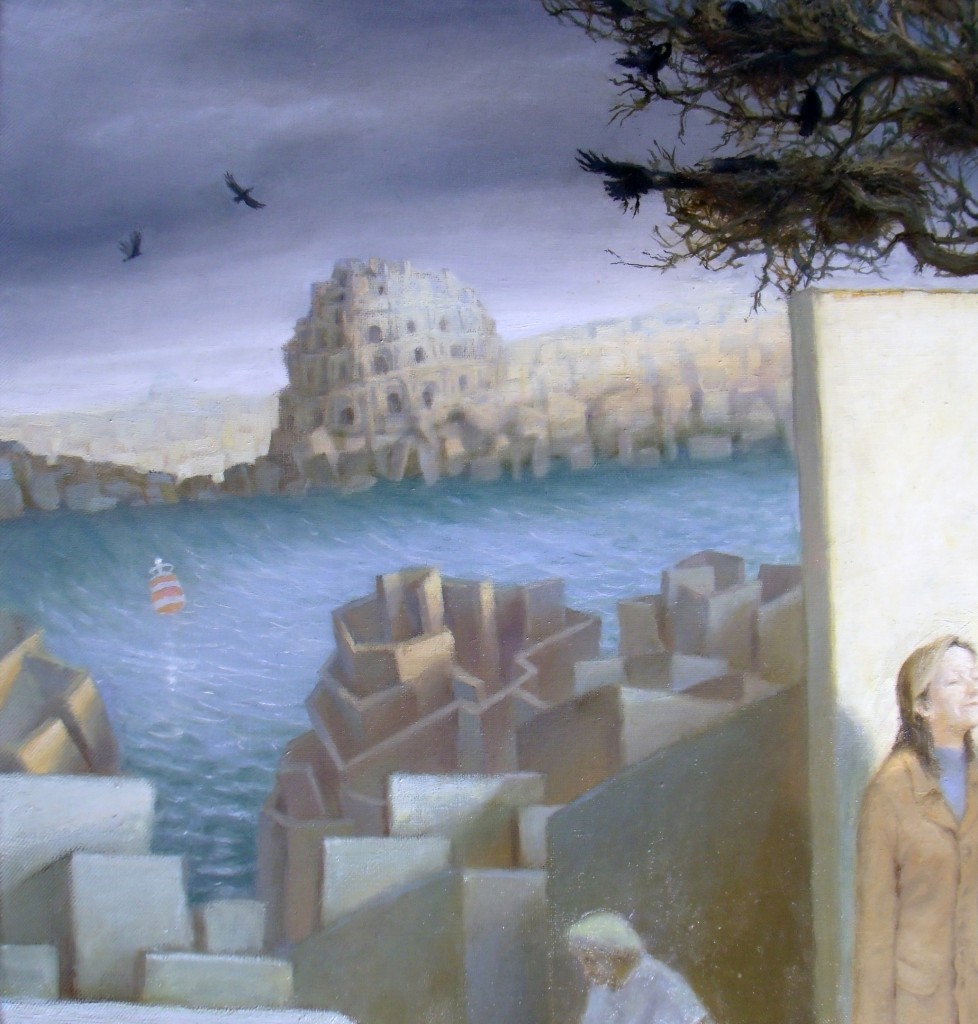 Проводник. Холст, масло. 90х150 см. Художник Иванищев Р. Год создания 2022. Четвертая картина из серии "Лабиринты". За основу взята абсурдная ситуация - это проводник в бесконечном лабиринте. Композиция обыграна различными ассоциативными образами. Работа над произведением заняла три года.