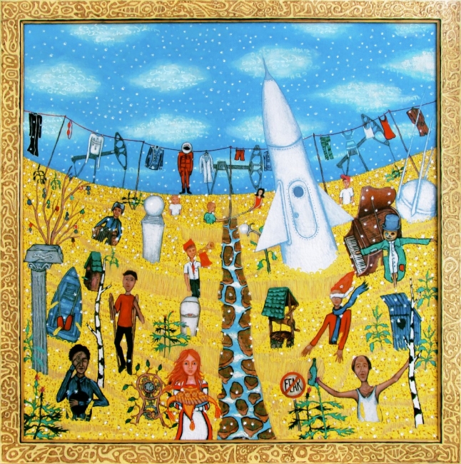 На горизонте возвышался силуэт гигантской ракеты наполовину погруженной в землю. По мере приближения открывались все новые странности. Многие предметы, они уже как будто встречали раньше. Рояль, холодильник, брошенная кем-то посреди поля лодка и многие другие вещи, которые они видели в самом начале пути. Даже тропа разветвляющаяся в форме креста, как в отражении повторяла очертания той тропы, через которую они попали в этот лабиринт из стеблей пшеницы. Но самым неожиданным было то, что они впервые увидели людей, которые, к тому же двигались навстречу.