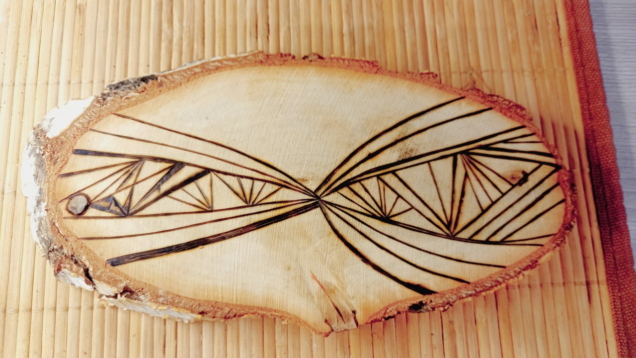 Выэигание по дереву. Простые линии. Украшение в интерьер. Подставка под чашечку кофе. Продается.
