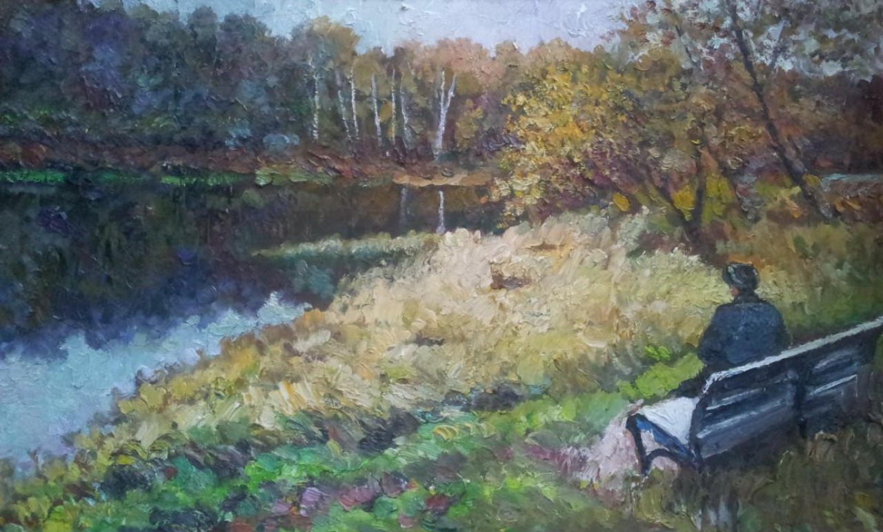Это - большой осенний пейзаж с фигурой человека