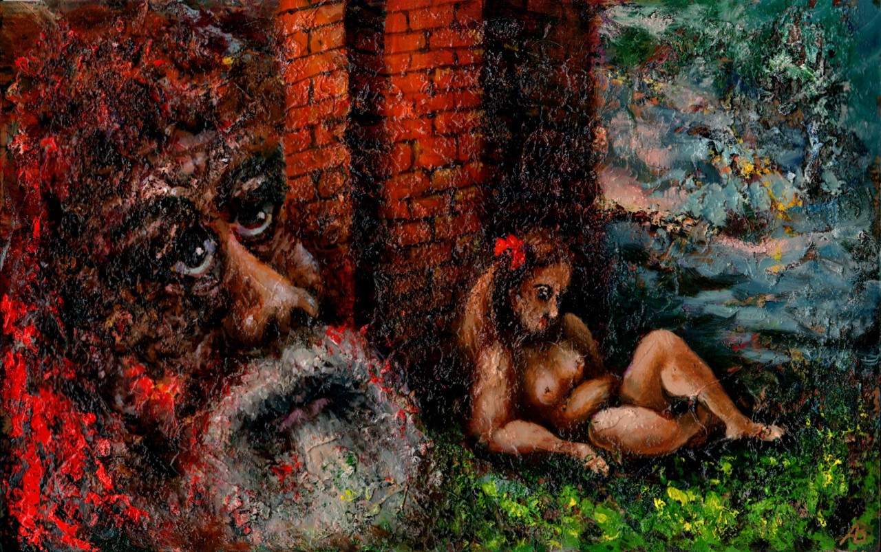 Первая. вид со спины. Старый седой человек раскинув руки стоит на вершине горы. Волосы его развиваются, он медленно рассыпается в прах. вторая. начало прошлого века. Несколько ...