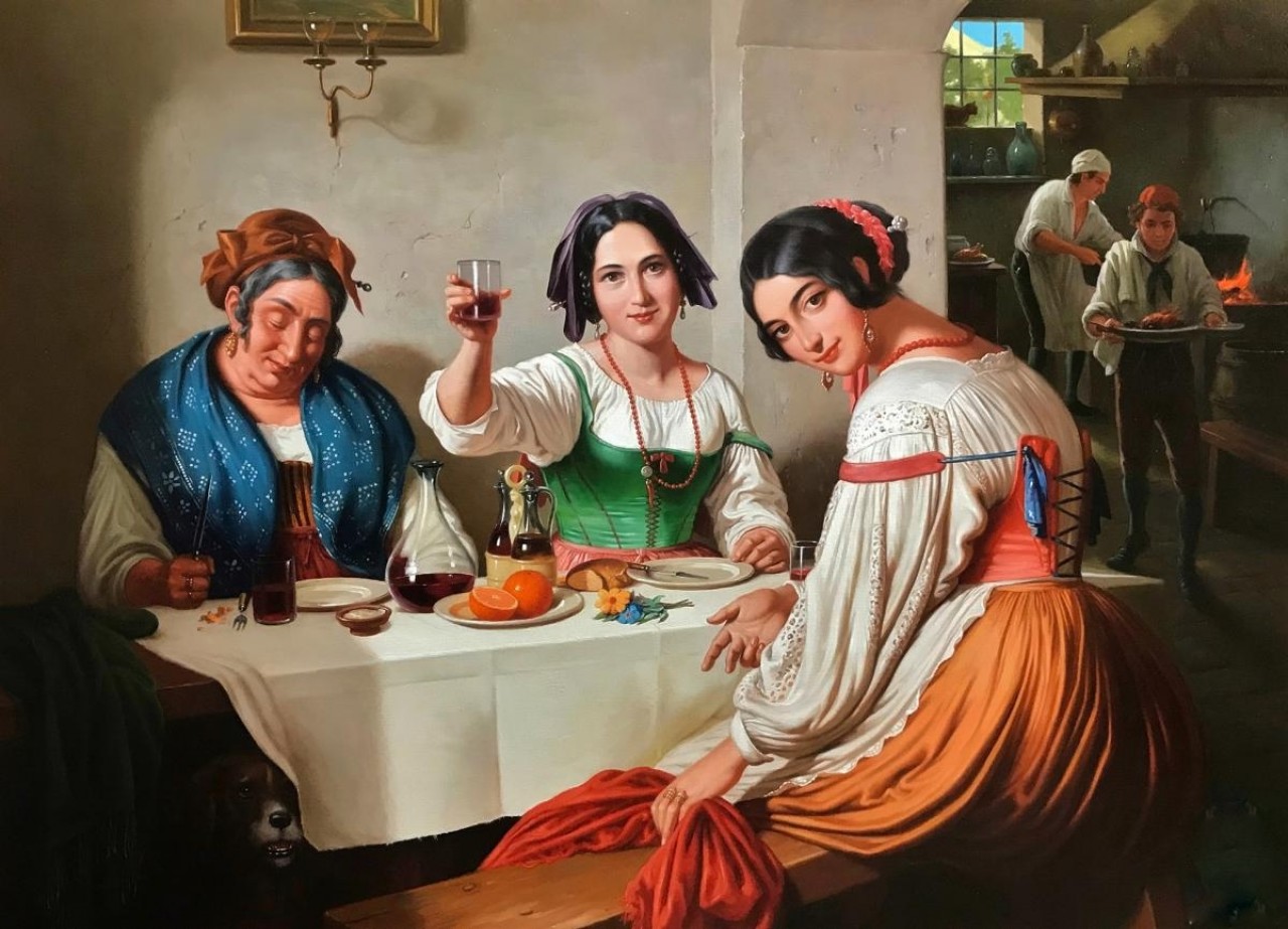 Моя многослойная живопись ведётся от начала до конца масляными красками. Сначала делается подмалевок - первый слой живописи. В многослойной живописи применяется лессировка - тонкие, прозрачные и полупрозрачные слои масляных красок, которые наносятся на хорошо просохшие слои краски.