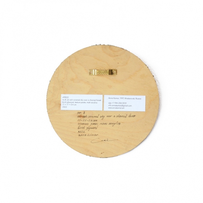 Оригинальная картина Анны Комар «no. 8» из коллекции «charred forest» 2022г.. Композиция из монохромного матового акрила с песочной текстурой на березовой фанере, размер 17 × 0,3 см. На обратной стороне картины стоит подпись и данные автора, крепление в виде зубьев. К картине прилагается сертификат подлинности от художника. Рама в комплект не входит. Упаковывается в бумагу, пенополистирол, картон, пленку. Возможна доставка по всему миру.