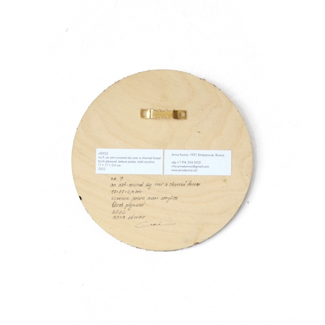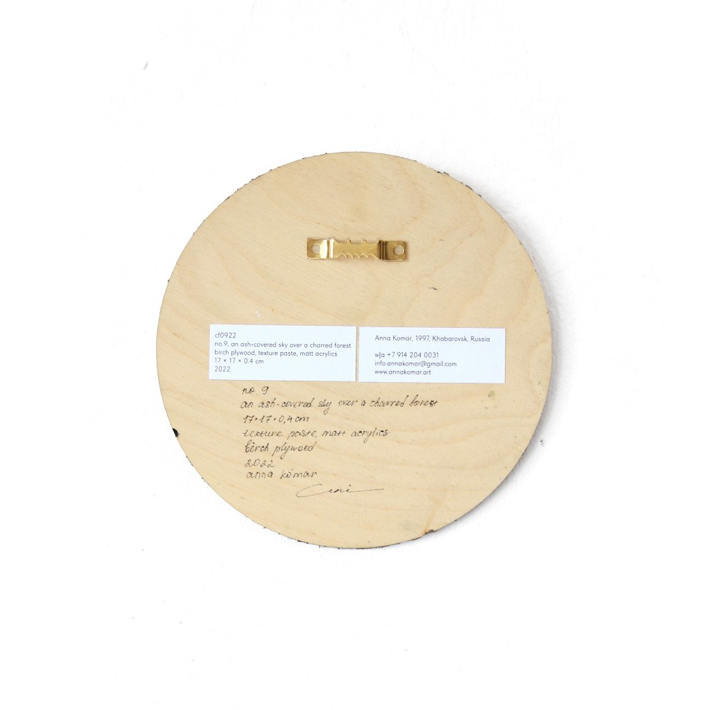 Оригинальная картина Анны Комар «no. 9» из коллекции «charred forest» 2022г.. Композиция из монохромного матового акрила с песочной текстурой на березовой фанере, размер 17 × 0,3 см. На обратной стороне картины стоит подпись и данные автора, крепление в виде зубьев. К картине прилагается сертификат подлинности от художника. Рама в комплект не входит. Упаковывается в бумагу, пенополистирол, картон, пленку. Возможна доставка по всему миру.