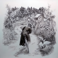 Первая. вид со спины. Старый седой человек раскинув руки стоит на вершине горы. Волосы его развиваются, он медленно рассыпается в прах. вторая. начало прошлого века. Несколько ...