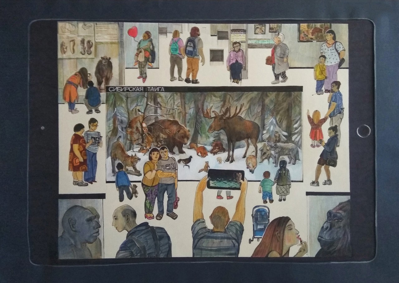 На картине затронута проблема экологии .Показан современный мир -взрослые,дети,взаимоотношения.