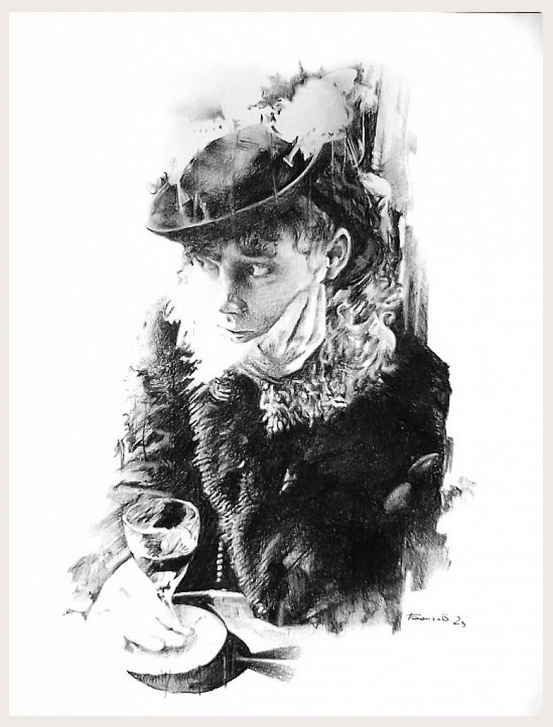 Первая. вид со спины. Старый седой человек раскинув руки стоит на вершине горы. Волосы его развиваются, он медленно рассыпается в прах. вторая. начало прошлого века. Несколько ...
