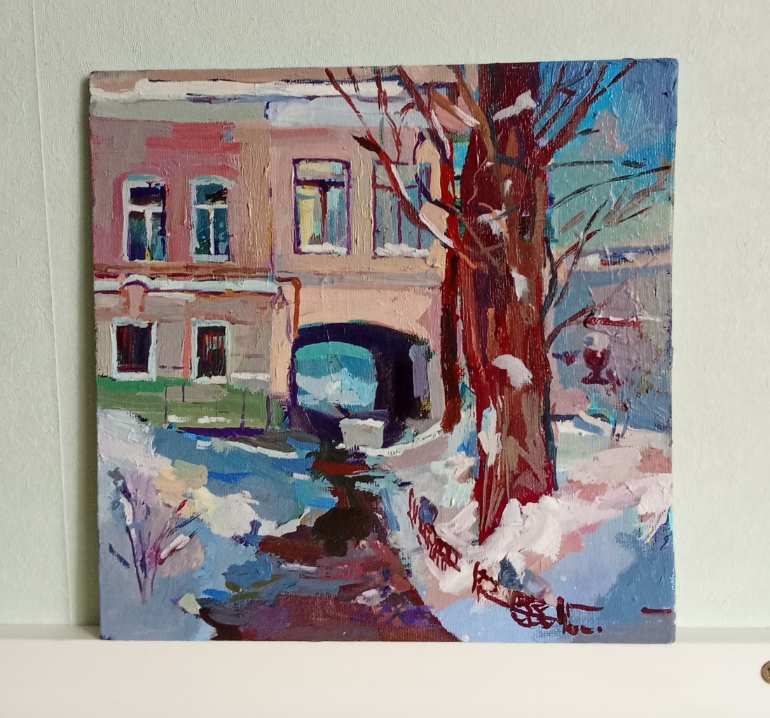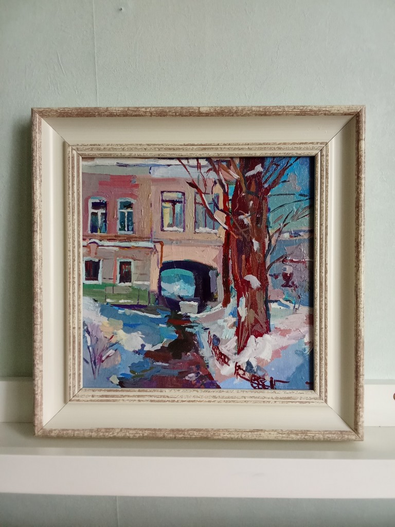 На картина изображена зимняя Москва (Большой каретный переулок)