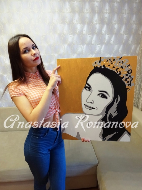 Использую профессиональные холсты с галерейной натяжкой тщательно прокрашиваю края благодаря чему портрету не требуется рамы. Разрабатываю большое количество цветных эскизов . Использую светостойкую акриловую краску. Покрываю гель лаком который защитить портрет от пыли и грязи.