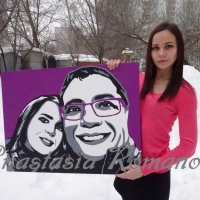 Использую профессиональные холсты с галерейной натяжкой тщательно прокрашиваю края благодаря чему портрету не требуется рамы. Разрабатываю большое количество цветных эскизов . Использую светостойкую акриловую краску. Покрываю гель лаком который защитить портрет от пыли и грязи.