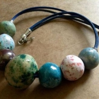 Каждая бусина вылеплена мной вручную.Они все полые.Прошли высокотемпературный обжиг.Покрыты немецкими глазурями и эмалями. Изображение не сотрется.Собраны на кожаный шнур