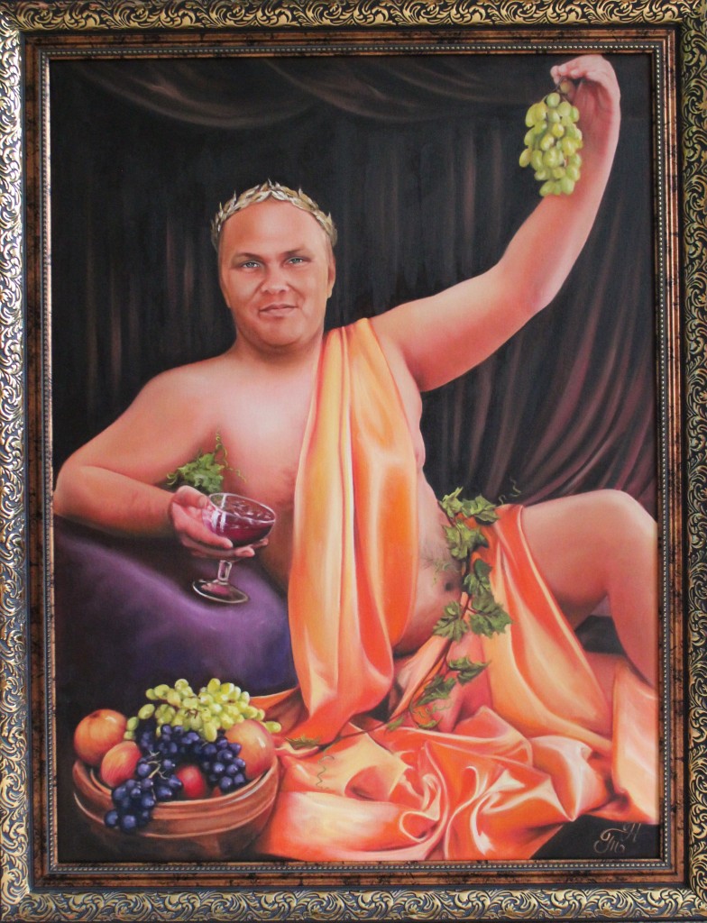 Портрет-сюрприз, выполнен по фотографии, в костюме Бога виноделия-Диониса.
