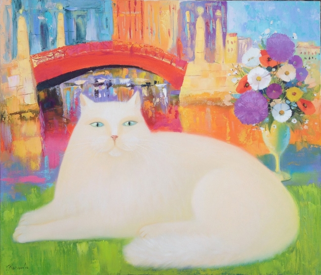 Кот и Красный мост в Санкт-Петербурге