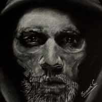 Первая. вид со спины. Старый седой человек раскинув руки стоит на вершине горы. Волосы его развиваются, он медленно рассыпается в прах. вторая. начало прошлого века. Несколько ...