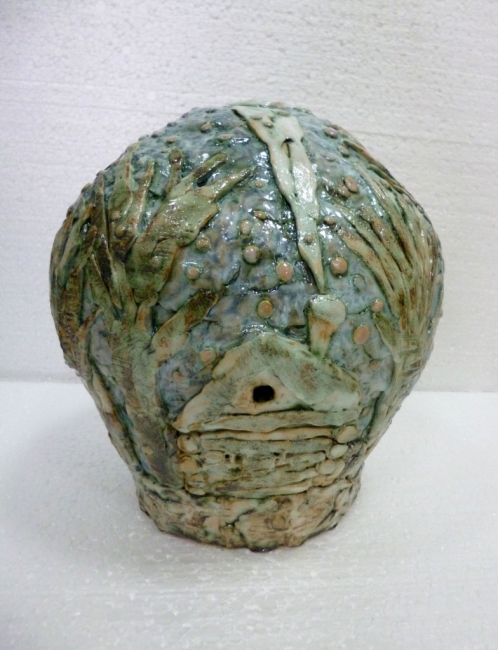 декоративная композиция "Зима", материалы-глина, эмаль,глазури, оксид меди