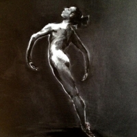 на черномгофрированном картоне мел, уголь