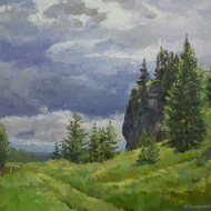 Первая. вид со спины. Старый седой человек раскинув руки стоит на вершине горы. Волосы его развиваются, он медленно рассыпается в прах. вторая. начало прошлого века. Несколько ...