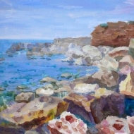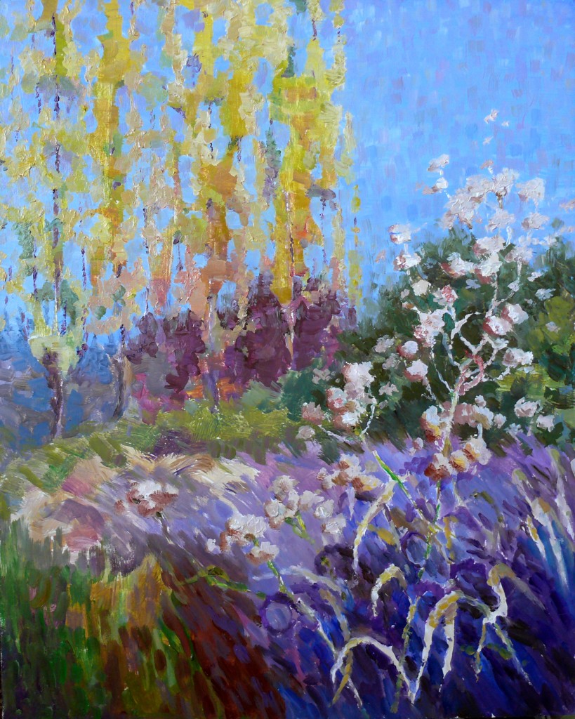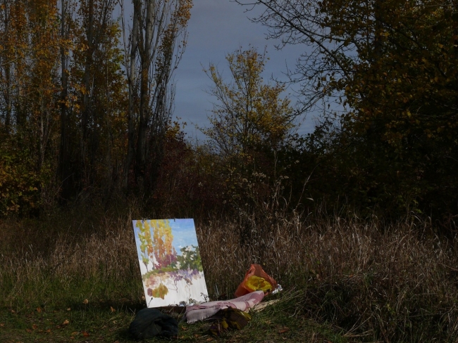 Этюд осеннего поля и тополей. в районе Бахчисарая.
