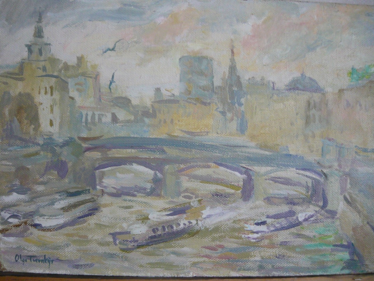 городской пейзаж, Бородинский мост, Москва река, картон, масло, размер 34х60