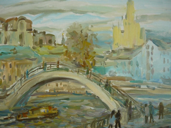 Москва, городской пейзаж.Река Яуза, мост. Холст масло , размер 40х50