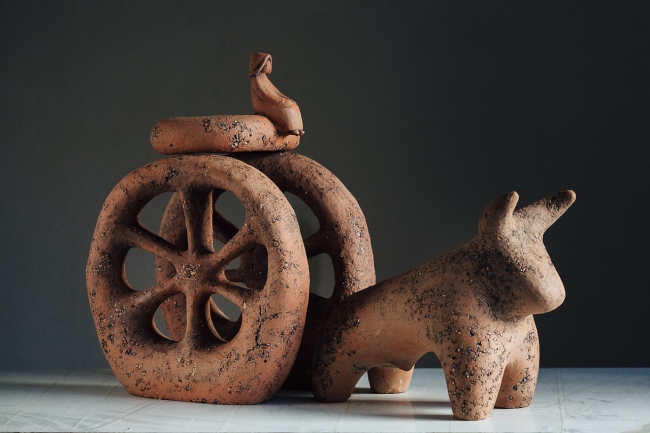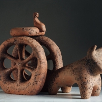 Скульптура "Кочевник" изображает собственно Человека кочевого образа жизни с его быком, его огромной телегой, везущей весь его скарб, семью, дом и утварь. Колеса также являются солярным символом, символом Вселенной. Ведь Кочевник ориентируется по звездам, куда идти, ориентируется на знаки природы, где искать пищу и по сути является частью мироздания, частью природы. Это то качество, которое Человек современный утратил. Первая версия работы была создана в 2006, в настоящее время находится в коллекции музея современного искусства им. Врубеля, г.Омск