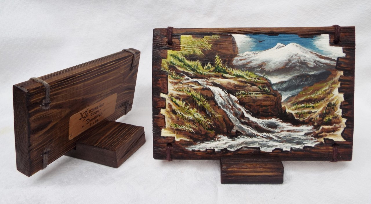 Авторская работа,оригинал.Доска на подставке,масло,браширование,матовый лак.
