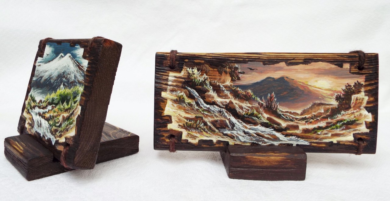 Авторская работа,оригинал.Доска на подставке,масло,браширование,матовый лак.