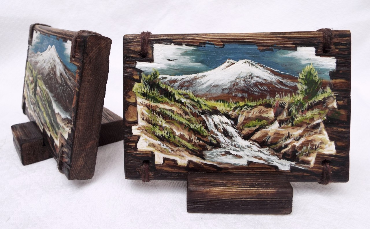 Авторская работа,оригинал.Доска на подставке,масло,браширование,матовый лак.