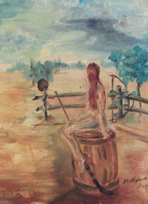 Первая. вид со спины. Старый седой человек раскинув руки стоит на вершине горы. Волосы его развиваются, он медленно рассыпается в прах. вторая. начало прошлого века. Несколько ...